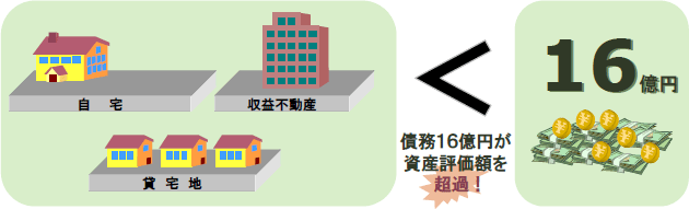 やがて相続が発生し、銀行からの追加借入も行いなんとか相続税は支払ったが、銀行の債務16 億円が残ってしまった。(約8億円の債務は金利が経費化できていない。)